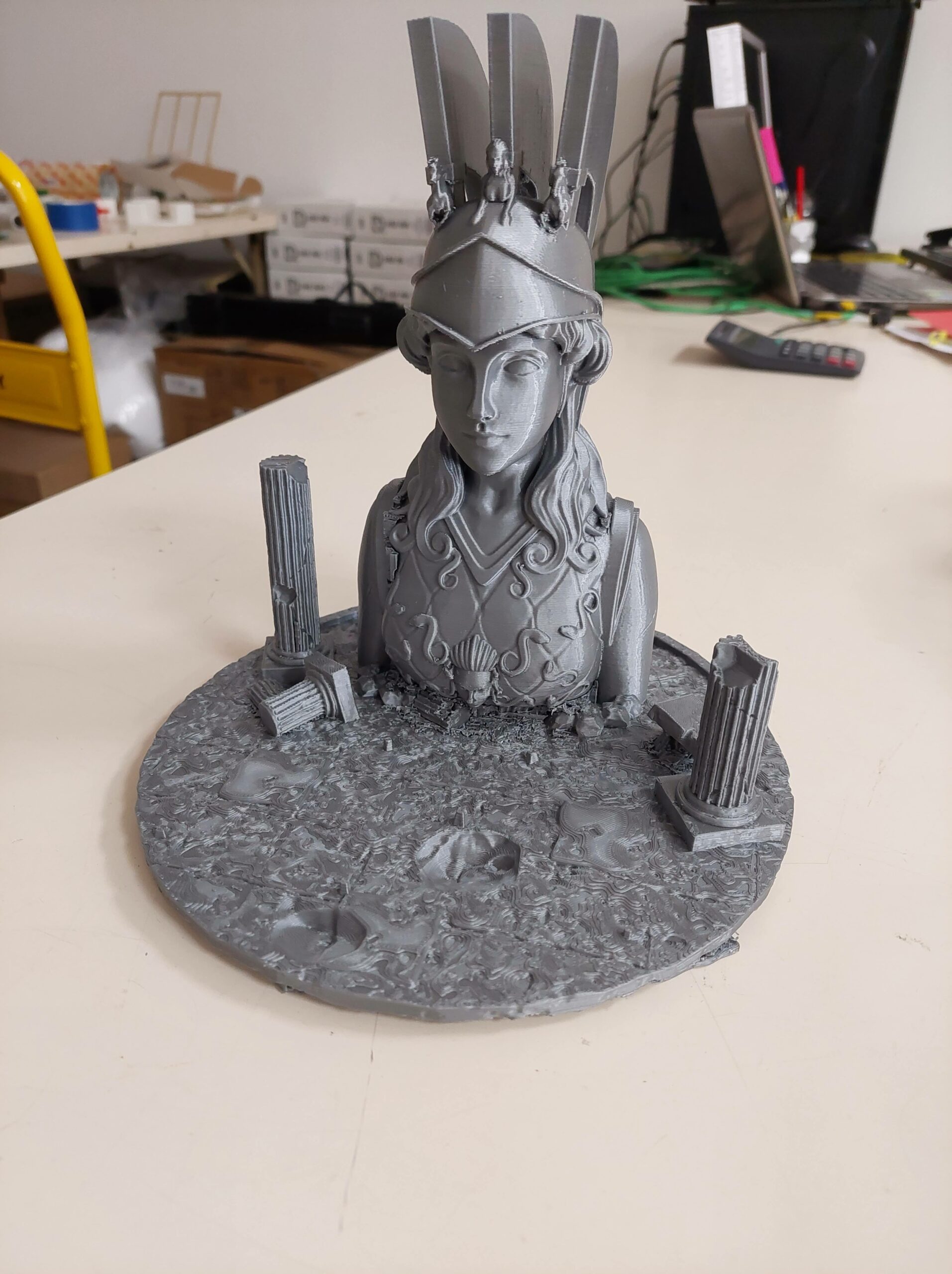 Base con motivo de la diosa Athena, mostrada en Caballeros del Zodiaco (Saint Seiya) durante la ejecución de la Exclamación de Athena, realizada por tres caballeros de oro.