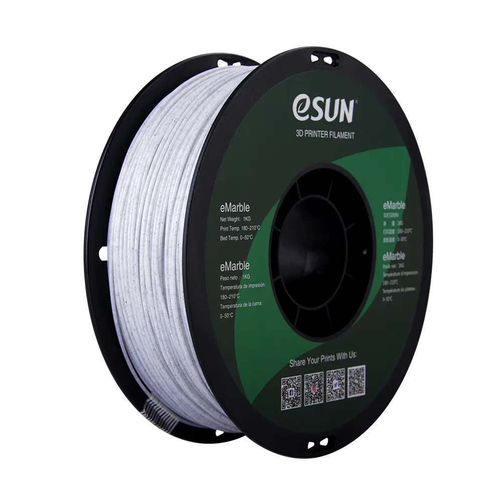 eMarble es un material de impresión 3D basado en PLA, también biodegradable. Al igual que el PLA, es amigable con el medio ambiente, buena tenacidad, buena resistencia. Baja tasa de contracción del material, diámetro uniforme.