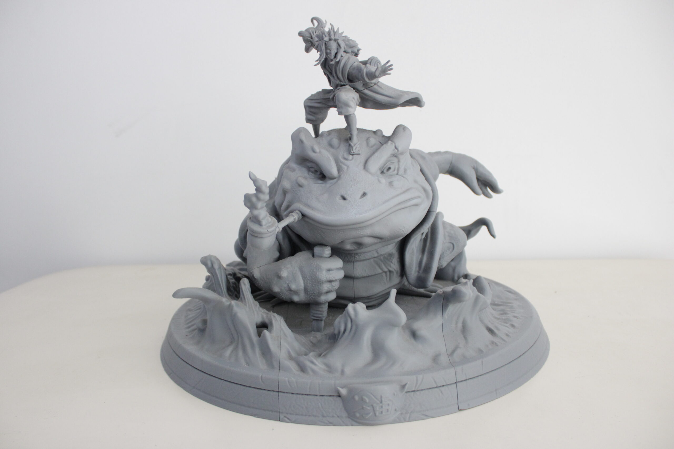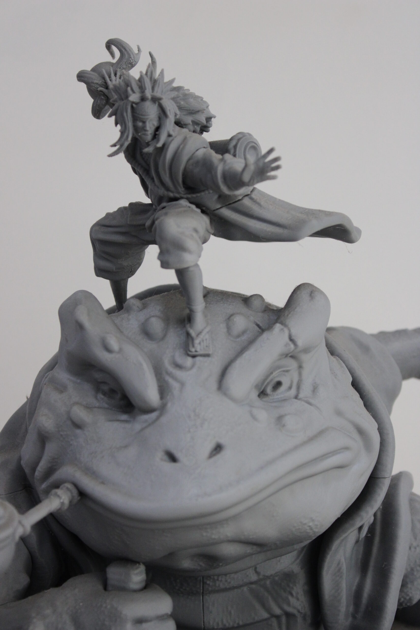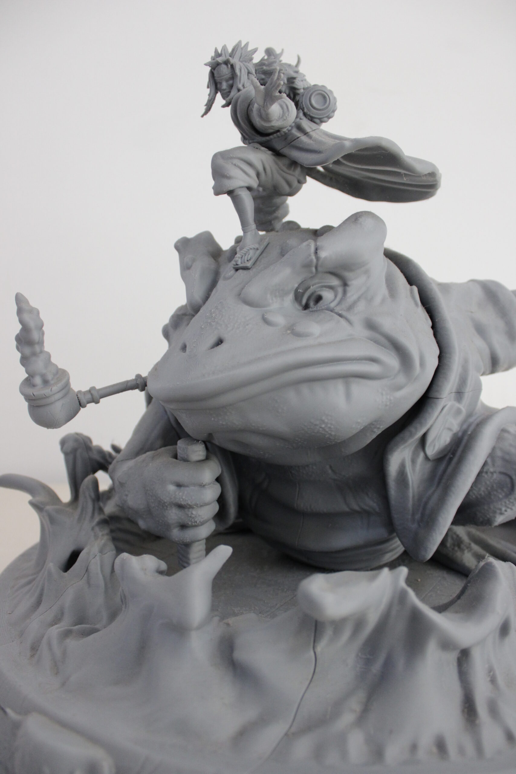Uno de los tres legendarios Sannin de Konoha, Jiraiya, de Naruto, junto con el jefe sapo Gamabunta.